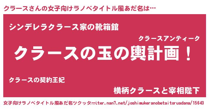 | 胡散臭い通販商品みたいなあだ名 | 『テレビで話題の高麗人参…その名も「クラース」』 |