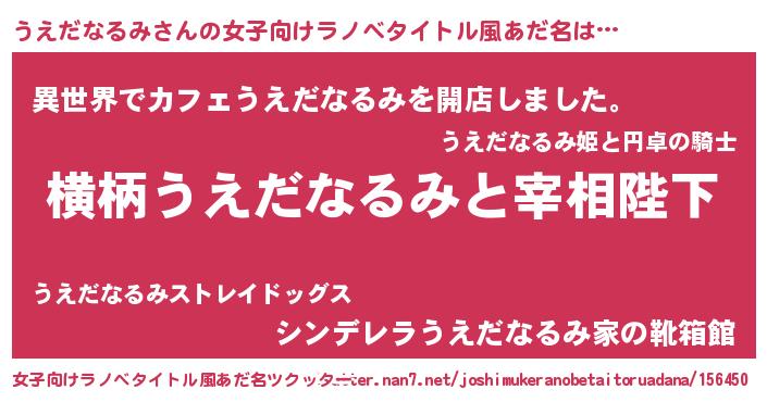 | 男性向けラノベタイトル風あだ名 | 『うえだなるみに滅ぼされるだけの簡単なお仕事です』 |