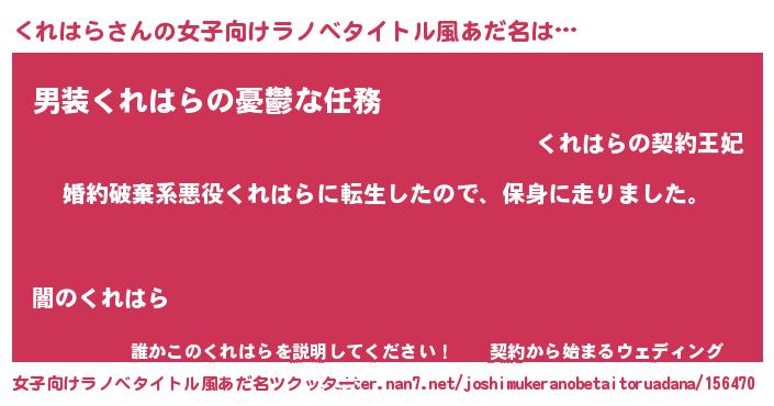 | 胡散臭い通販商品みたいなあだ名 | 『必ず成功する霊験あらたかなお札…その名も「くれはら」』 |