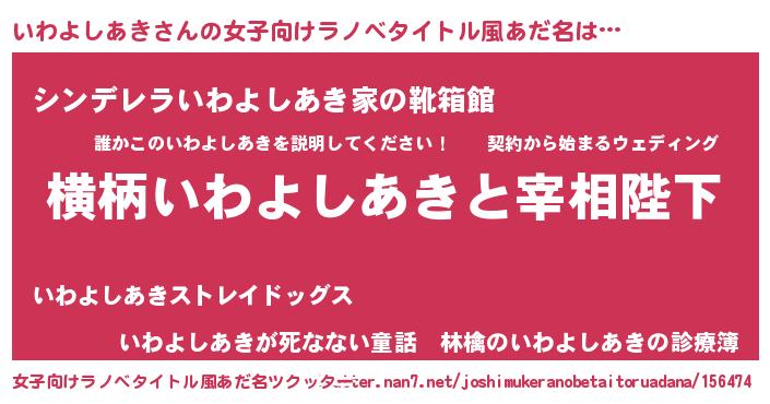 | 男性向けラノベタイトル風あだ名 | 『いわよしあきに滅ぼされるだけの簡単なお仕事です』 |
