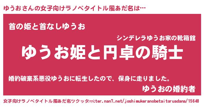| 男性向けラノベタイトル風あだ名 | 『ゆうおの憂鬱』『はたらくゆうおさま!』 |