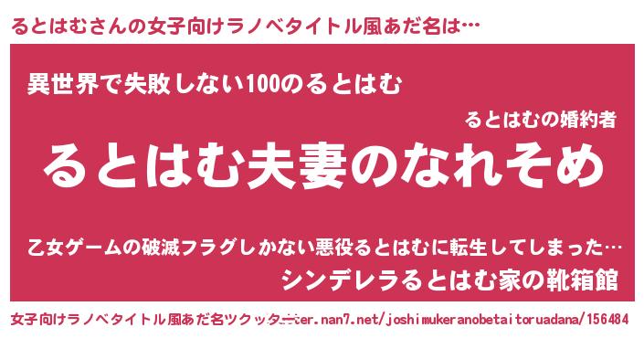 | 男性向けラノベタイトル風あだ名 | 『おまえをオタクにしてやるから、俺をるとはむにしてくれ! 』 |