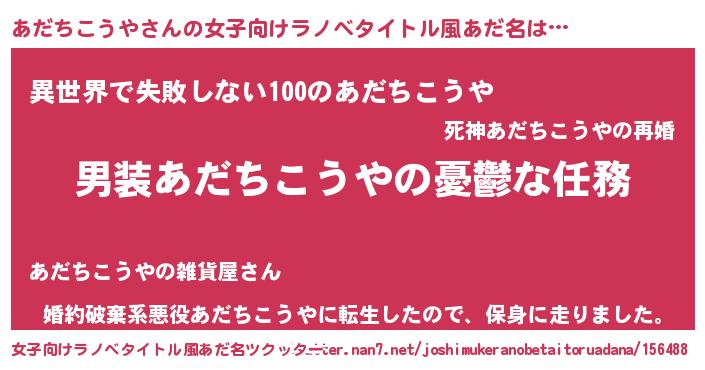 | 胡散臭い通販商品みたいなあだ名 | 『来世でも幸せになれる健康食品…その名も「あだちこうや」』 |
