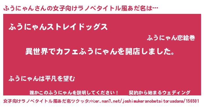 | 男性向けラノベタイトル風あだ名 | 『誰もが恐れるあのふうにゃんが、ぼくの専属メイドになるようです。』 |