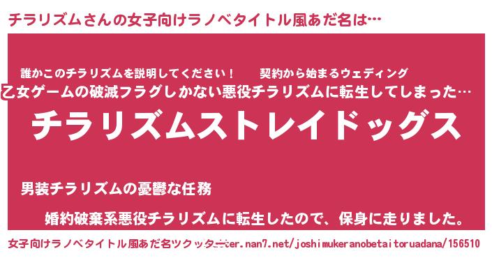 | 男性向けラノベタイトル風あだ名 | 『Re:チラリズムから始める異世界生活』 |
