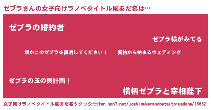 | 男性向けラノベタイトル風あだ名 | 『ゼブラアートオンライン』 |
