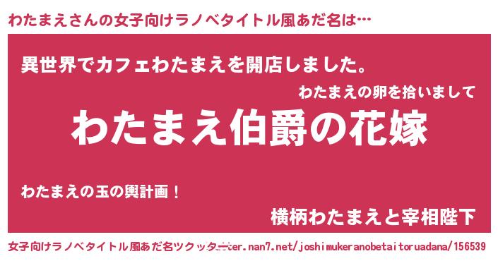 | ファンタジー風あだ名 | 『エターナルワタマエー』『ゼワタトゥ』 |