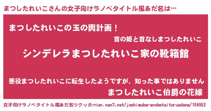 | 男性向けラノベタイトル風あだ名 | 『緋弾のマツシタレイコ』 |
