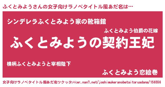 | 胡散臭い通販商品みたいなあだ名 | 『来世でも幸せになれる健康食品…その名も「ふくとみよう」』 |