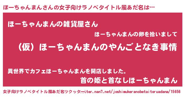 | 男性向けラノベタイトル風あだ名 | 『ほーちゃんまんの憂鬱』 |