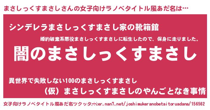 | 男性向けラノベタイトル風あだ名 | 『Re:まさしっくすまさしから始める異世界生活』 |