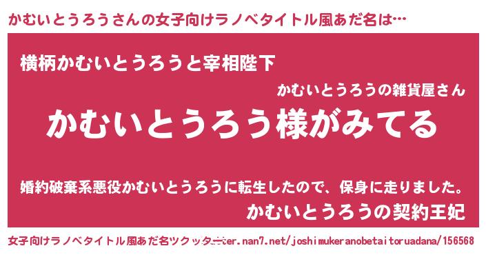 | 男性向けラノベタイトル風あだ名 | 『かむいとうろうの嫁は女の子じゃないと思った?』 |