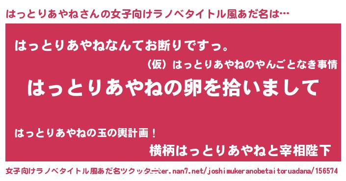 | 意味不明あだ名 | 『とにかく怪しいはっとりあやね』 |