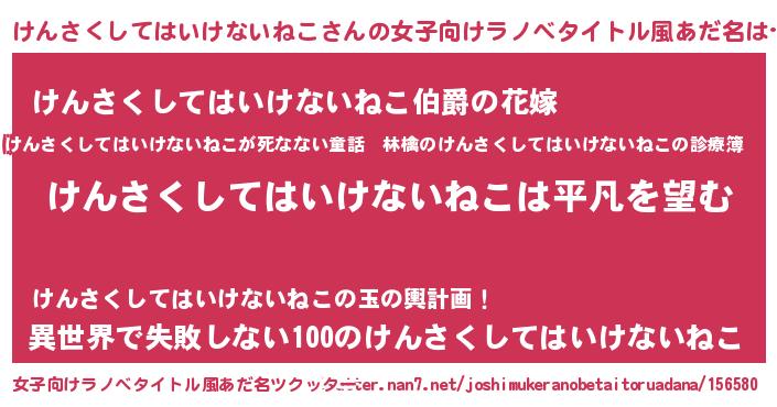 | 胡散臭い通販商品みたいなあだ名 | 『信頼と実績のネックレス…その名も「けんさくしてはいけないねこ」』 |