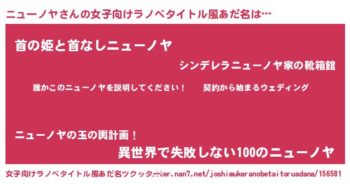 | 男性向けラノベタイトル風あだ名 | 『ニューノヤアートオンライン』 |