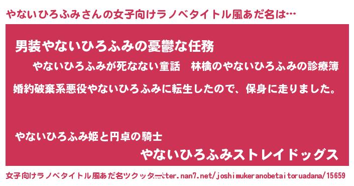 | 男性向けラノベタイトル風あだ名 | 『転生したらやないひろふみだった件』 |