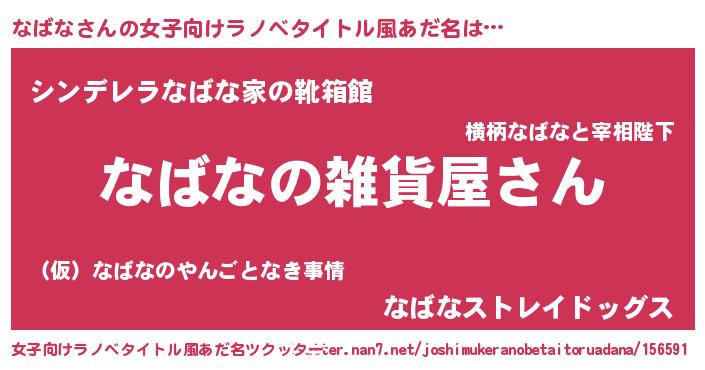 | 男性向けラノベタイトル風あだ名 | 『やはりなばなの青春ラブコメはまちがっている 』 |