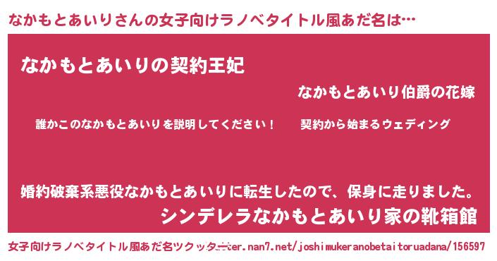 | 男性向けラノベタイトル風あだ名 | 『ナカモトアイリアートオンライン』 |