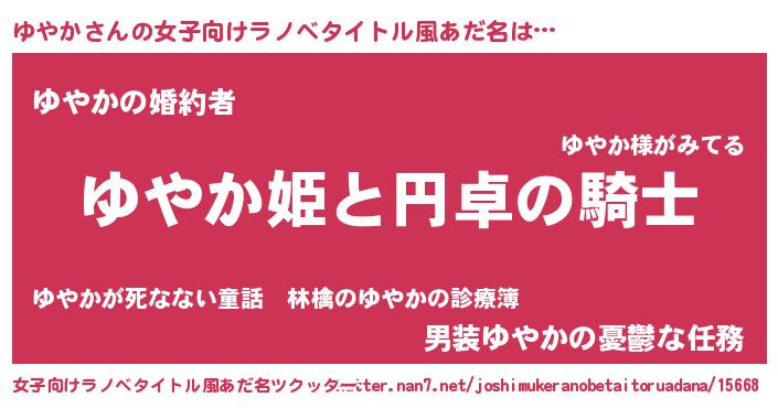 | 男性向けラノベタイトル風あだ名 | 『ユヤカアートオンライン』 |