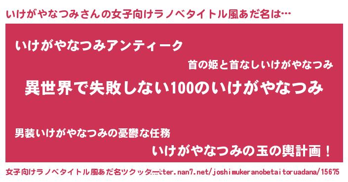 | 男性向けラノベタイトル風あだ名 | 『いけがやなつみという概念が存在しない退屈な世界 』 |