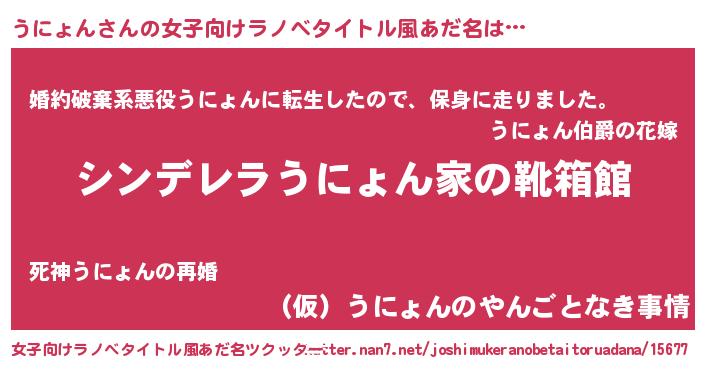 | 男性向けラノベタイトル風あだ名 | 『緋弾のウニョン』『ウニョンスレイヤー』 |