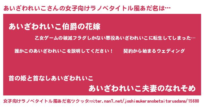 | 胡散臭い通販商品みたいなあだ名 | 『億万長者になれるブレスレット…その名も「あいざわれいこ」』 |