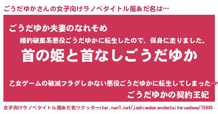 | 胡散臭い通販商品みたいなあだ名 | 『お金では代えられない隕石のかけら…その名も「ごうだゆか」』 |
