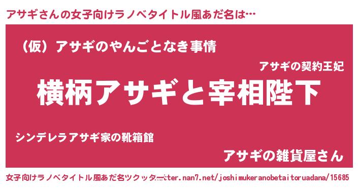 | 男性向けラノベタイトル風あだ名 | 『アサギに滅ぼされるだけの簡単なお仕事です』 |