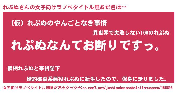 | ヘコむあだ名 | 『れぷにー』『れぷぬ(小並感)』 |