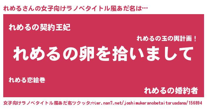 | 男性向けラノベタイトル風あだ名 | 『れめるの嫁は女の子じゃないと思った?』 |