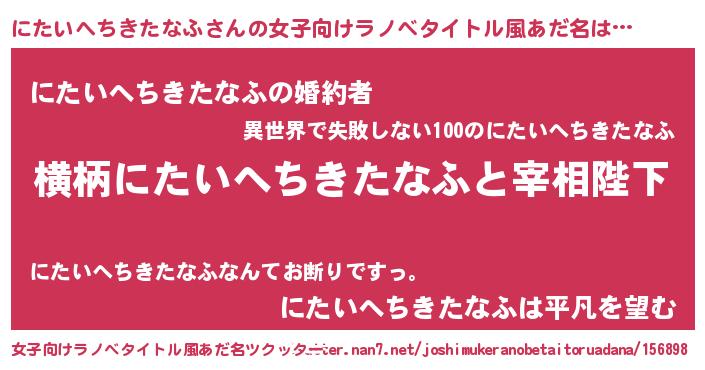 | 男性向けラノベタイトル風あだ名 | 『にたいへちきたなふに滅ぼされるだけの簡単なお仕事です』 |