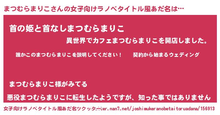 | 男性向けラノベタイトル風あだ名 | 『マツムラマリコアートオンライン』 |