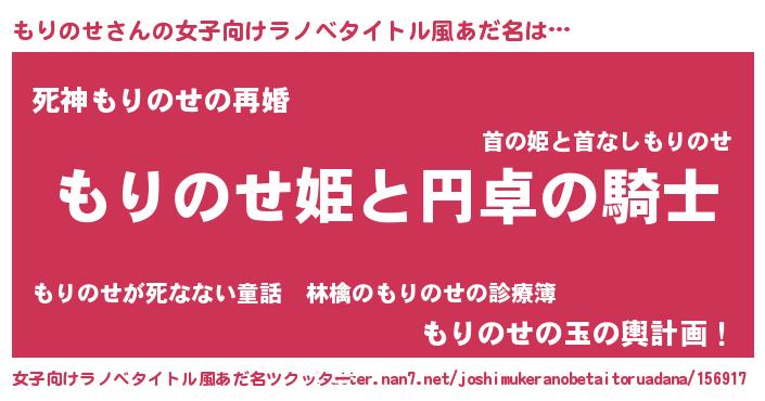 | 男性向けラノベタイトル風あだ名 | 『もりのせの憂鬱』『魔弾の王ともりのせ』 |