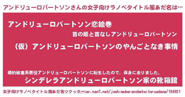 | 男性向けラノベタイトル風あだ名 | 『アンドリューロバートソンの憂鬱』 |