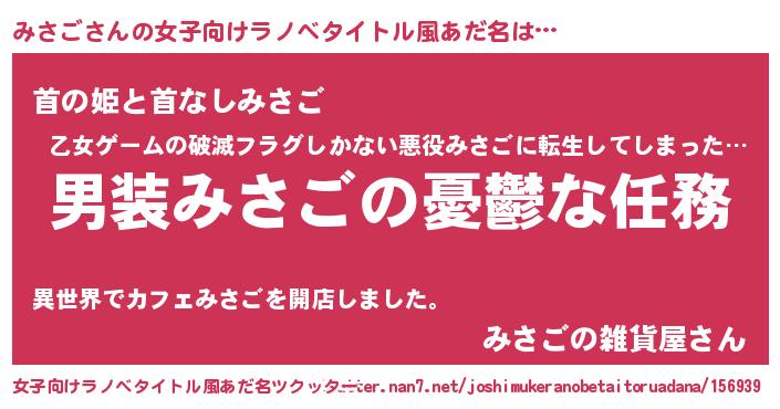 | 男性向けラノベタイトル風あだ名 | 『うちのみさごが世界を掌握している!』 |