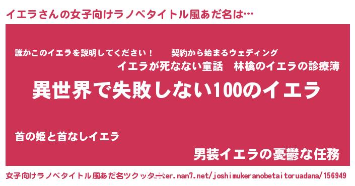 | 男性向けラノベタイトル風あだ名 | 『イエラという概念が存在しない退屈な世界 』 |