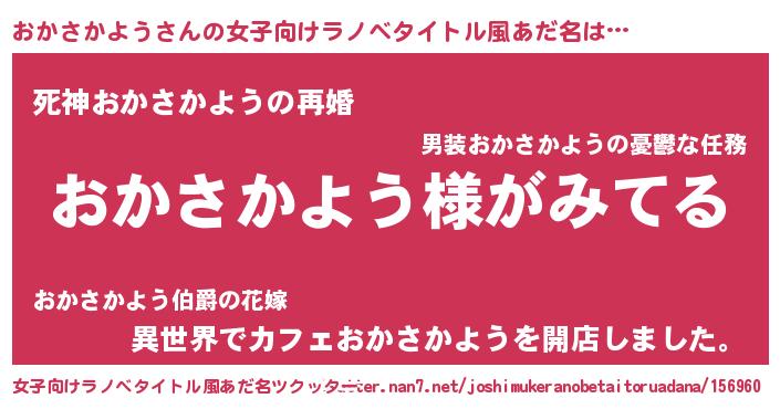 | 意味不明あだ名 | 『とにかく怪しいおかさかよう』 |