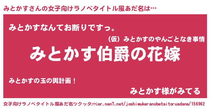 | 男性向けラノベタイトル風あだ名 | 『やはりみとかすの青春ラブコメはまちがっている 』 |