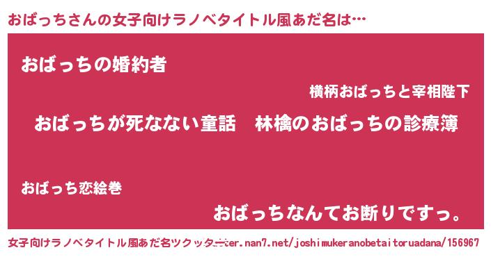 | 意味不明あだ名 | 『住所不定無職おばっち(77歳)』 |