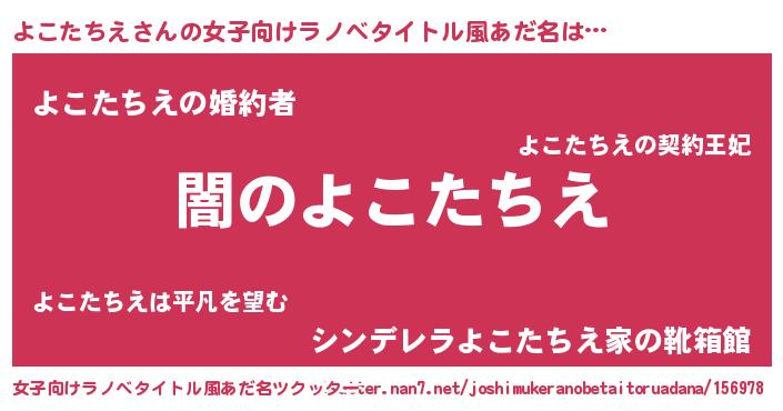 | 男性向けラノベタイトル風あだ名 | 『Re:よこたちえから始める異世界生活』 |