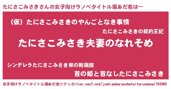 | 男性向けラノベタイトル風あだ名 | 『おまえをオタクにしてやるから、俺をたにさこみさきにしてくれ! 』 |