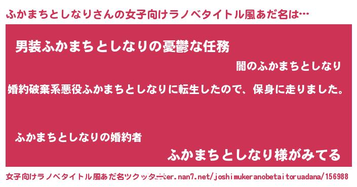 | 男性向けラノベタイトル風あだ名 | 『フカマチトシナリスレイヤー』 |