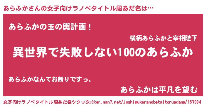 | 胡散臭い通販商品みたいなあだ名 | 『絶対に幸福をもたらす健康食品…その名も「あらふか」』 |