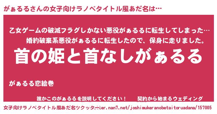 | 胡散臭い通販商品みたいなあだ名 | 『世界中を虜にした世界で10本だけ現存している希少なブランデー…その名も「がぁるる」』 |