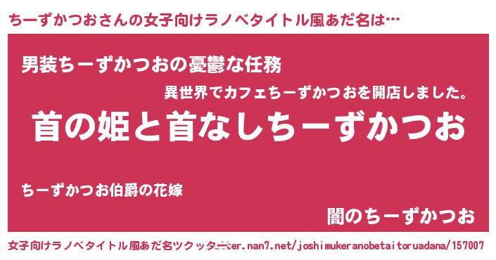 | 意味不明あだ名 | 『自称ちーずかつお』 |