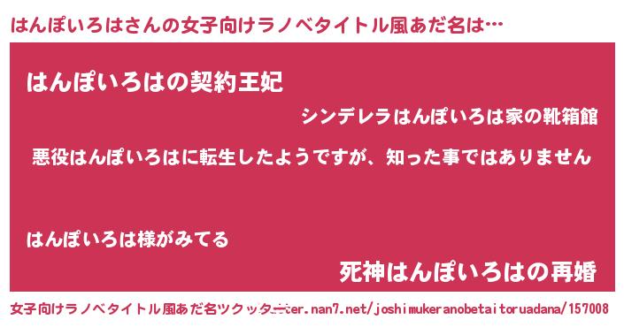 | 男性向けラノベタイトル風あだ名 | 『この素晴らしい世界にはんぽいろはを!』 |