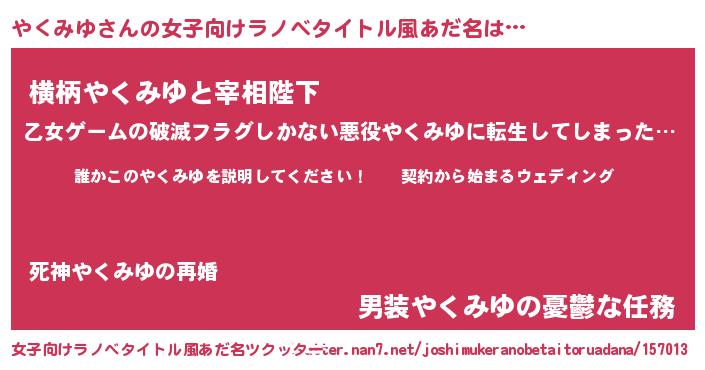 | 胡散臭い通販商品みたいなあだ名 | 『億万長者になれるブレスレット…その名も「やくみゆ」』 |