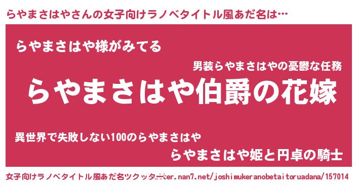 | ファンタジー風あだ名 | 『エターナルラヤマサハヤー』 |