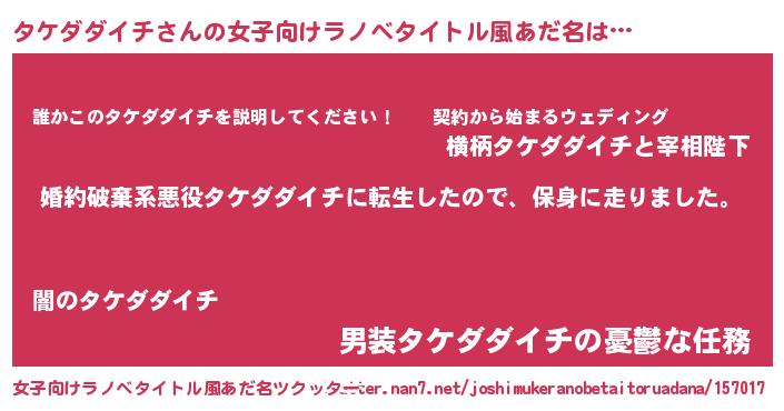 | 男性向けラノベタイトル風あだ名 | 『タケダダイチスレイヤー』 |