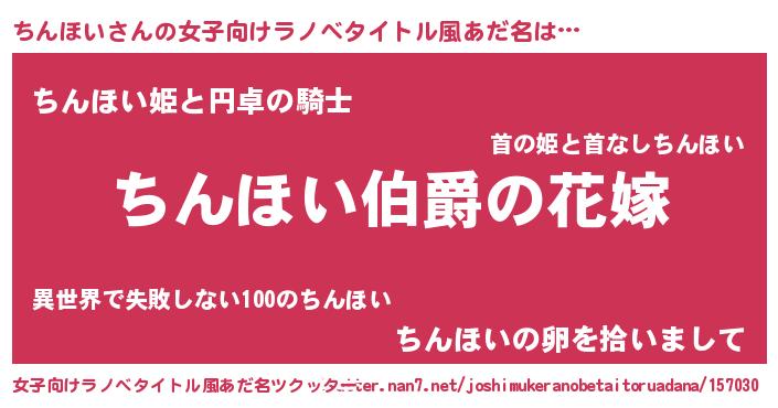 | 男性向けラノベタイトル風あだ名 | 『やはりちんほいの青春ラブコメはまちがっている 』 |